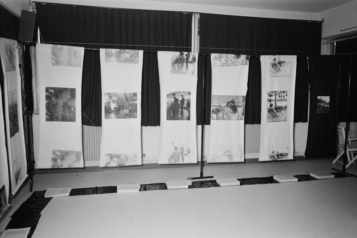 Les photographies sélectionnées ont été tirées sur toile sensible en référence aux pendrillons de théâtre.