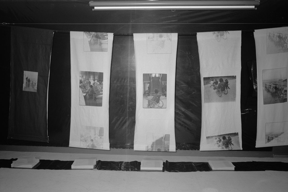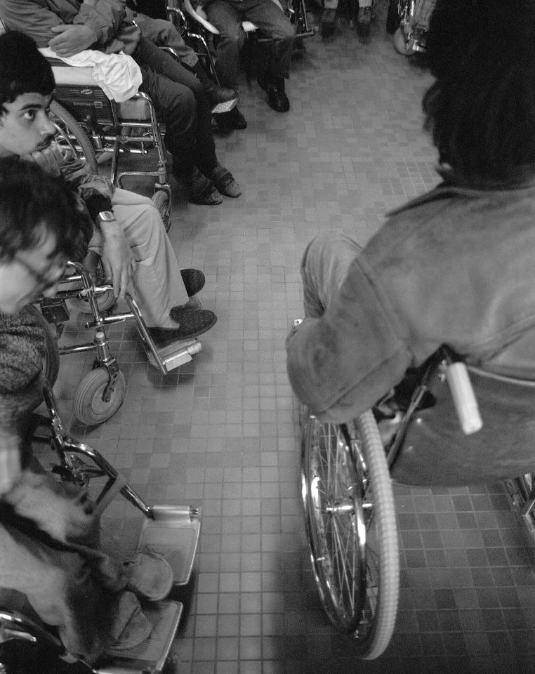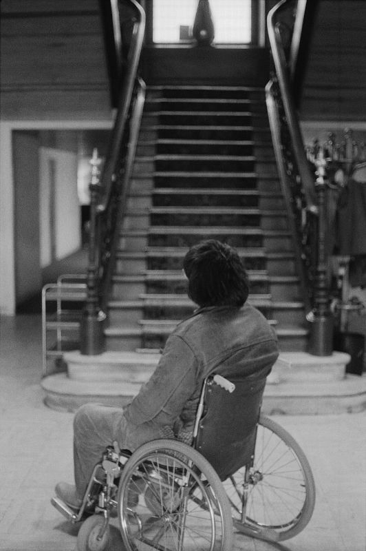 Sur une proposition de Nicolas Peskine, je devais réaliser un reportage pendant le déplacement de la Compagnie du hasard entre Bourges, La Rochelle et Mont de Marsan. La seule contrainte qu’il donnait, ne jamais le photographier de face. Montrer les difficultés que rencontre une personne se déplaçant en fauteuil roulant.