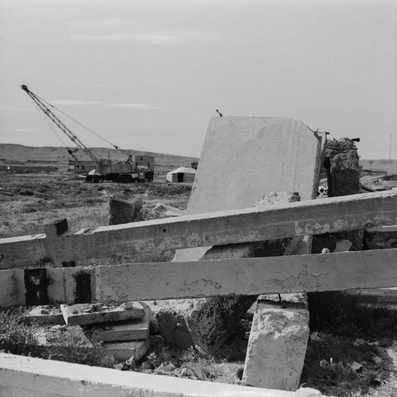La ville la plus éloignée d’Ulaanbaatar sur la ligne ferroviaire reliant Moscou à Pékin. Lorsque nous nous promenons à pied au-delà de ses limites, nous pouvons arriver là où des murs préfabriqués sont rangés comme des livres sur une étagère. Tout nous laisse deviner qu’ici il y aurait eu plusieurs bâtiments.